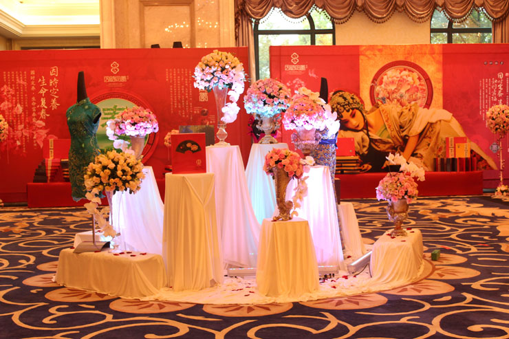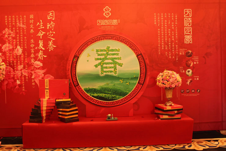 2014年5月15日,夏令赢·第十六届中华国医养生文化论坛在天府成都盛大开幕,会场布置古雅妆丽,成千上百的玫瑰花装饰而成的五周年花墙艳红夺人,花海绽放的气息如同女性独有的魅力一般无可抵挡。论坛经养三品牌花期、花禧时、因时定养产品展示各有特色。花期产品展示,一个成熟女性自信的向众人微笑,丝毫不逊与达芬奇笔下的蒙娜丽莎的微笑,展现了花期产品的神秘之处;花禧时产品展示,宫廷风的民族气息,宫廷女人展现了中国传统女性的温雅纯洁之美,花禧时向世人传播中国女性特有的文雅蕴含;因时定养产品展示,一个优雅的女性侧躺着,是这么的休闲得意,美丽风韵的姿貌,这是女人最美丽之姿。