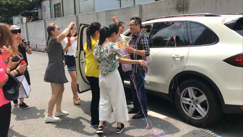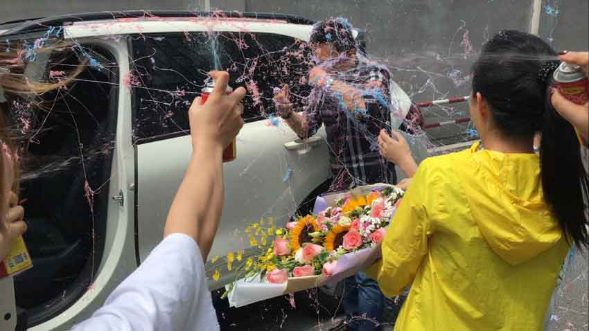 2017年6月6日,员工按计划劫持董事长座驾;cs场地玩枪战;KTV为董事长庆生